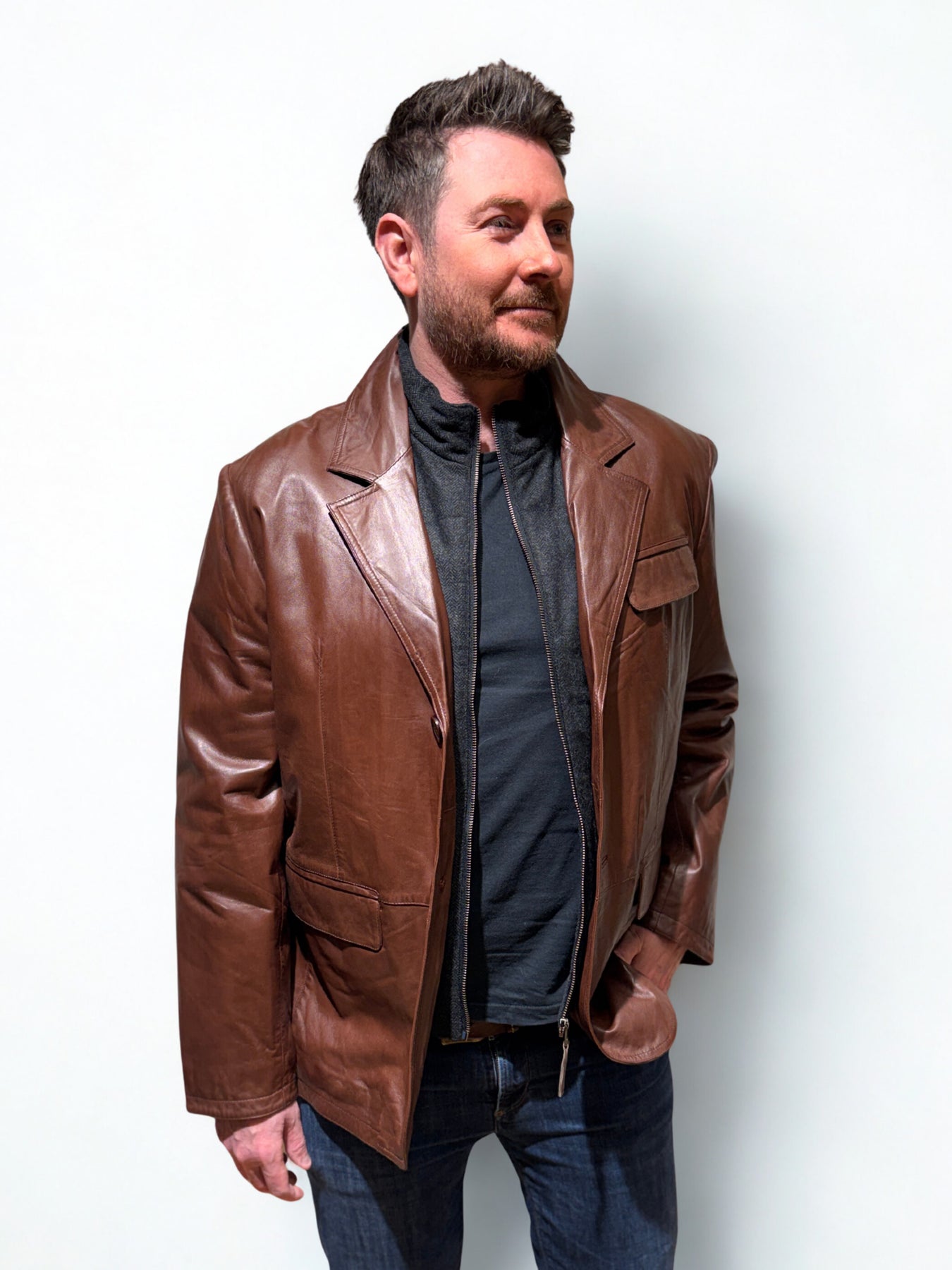 Skinnjakke fra Johnny L  i lammeskinn. Fin fasong med avtagbar hals inne i.